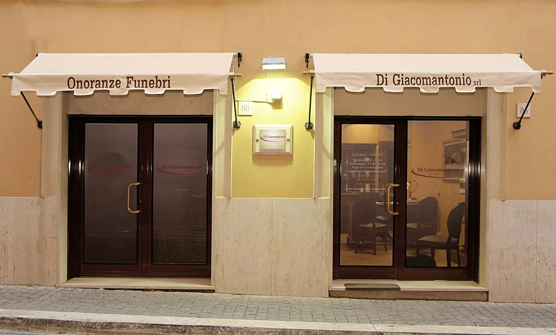 Da 55 anni l'agenzia Di Giacomantonio si occupa delle onoranze funebri fin nel minimo dettaglio. Effettuiamo un servizio a 360 gradi, che va dalla stampa all'affissione dei manifesti e, in seguito, dei ringraziamenti e delle partecipazioni; ci occupiamo inoltre dell'allestimento della camera ardente, della vestizione, dell'esumazione e dell'eventuale cremazione della salma. Gestiamo inoltre il disbrigo delle complesse pratiche burocratiche legate ai decessi e al sistema cimiteriale, per dispensare le famiglie da un'ulteriore difficoltà. Effettuiamo infine il trasporto del defunto in tutto il territorio nazionale e all'estero con i nostri mezzi all'avanguardia e i nostri autisti professionisti.